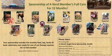 Monthly gifts start at just $10. Your gift helps to cover the care of our therapeutic herd and the maintenance costs of our facility & heavy equipment!